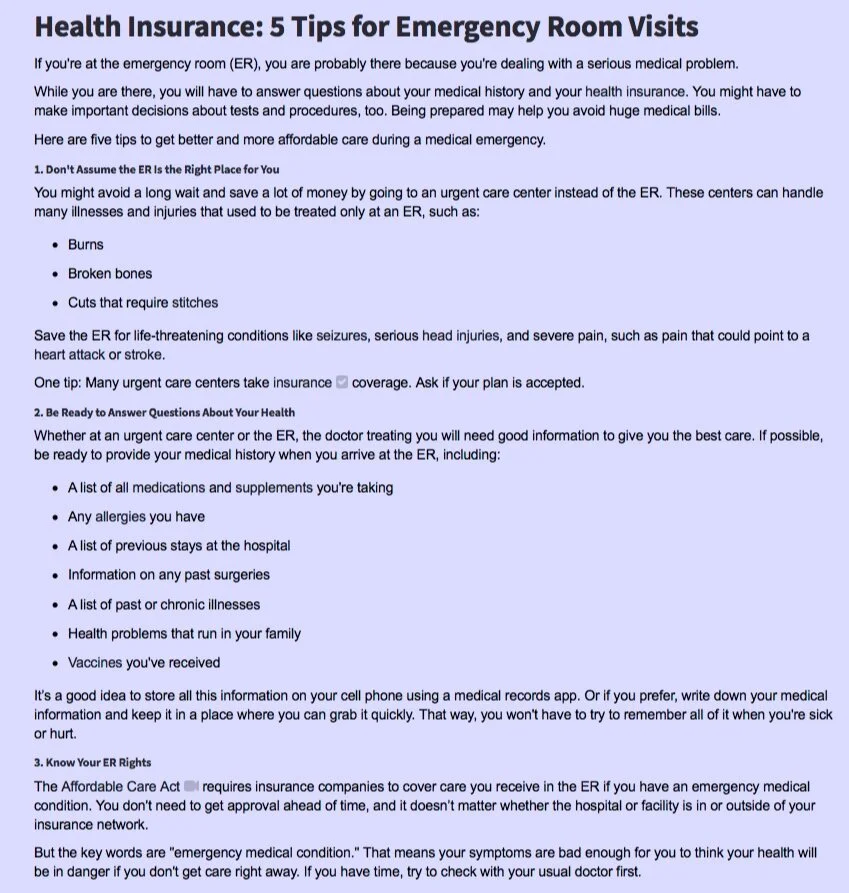 You will need to show your insurance information when seeking medical treatment.